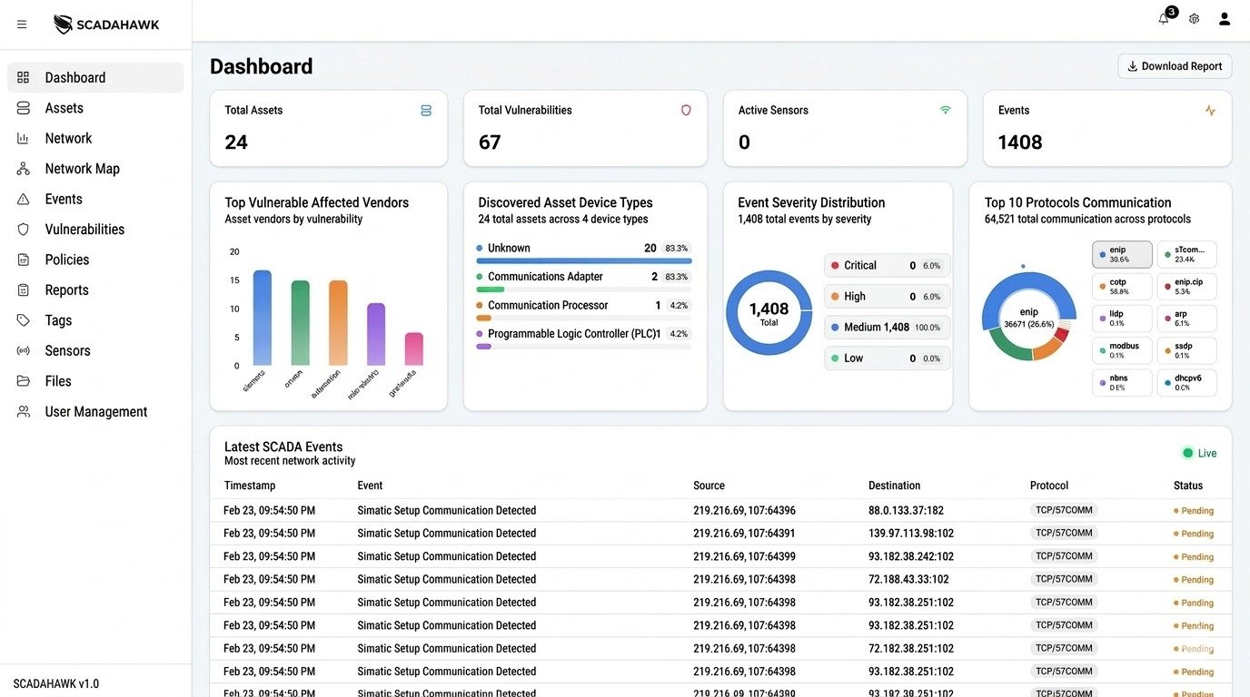 SCADAHawk™ continuously monitors your OT and ICS infrastructure, without agents, active scans, or intrusive probes. Engineered from the ground up for environments where the protocol IS the process.